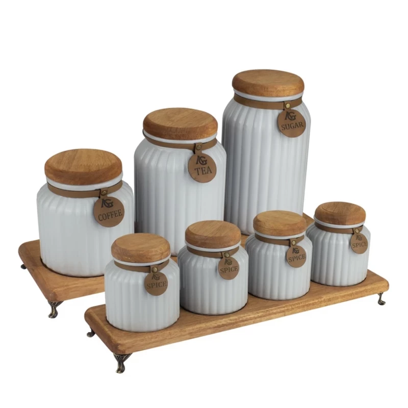 سرویس پاسماوری علاوه بر زیبایی خاصی که به آشپزخانه می دهد بسیار کاربردی برای نگهداری ادویه جات غذا. و عطریجات مخصوص چای است. این سرویس 7 پارچه دارای بدنه ای از جنس سرامیک و سری و پایه (استند) آن از جنس چوب بامبوخارجی می باشد